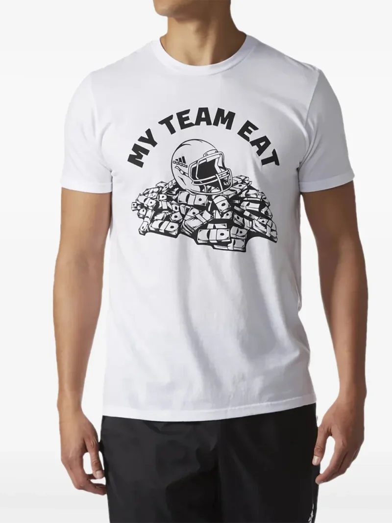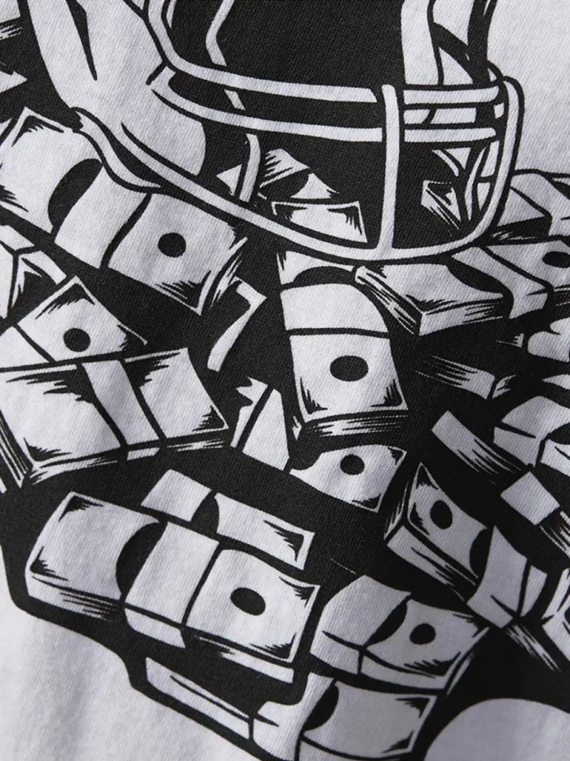 Highlightswhitegraphic printcrew neckshort sleevesmoney motifhelmet detail