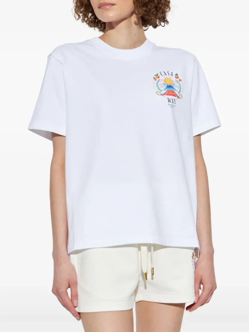 Highlightswhitefront graphic designlogo letteringshort sleevescrew neck