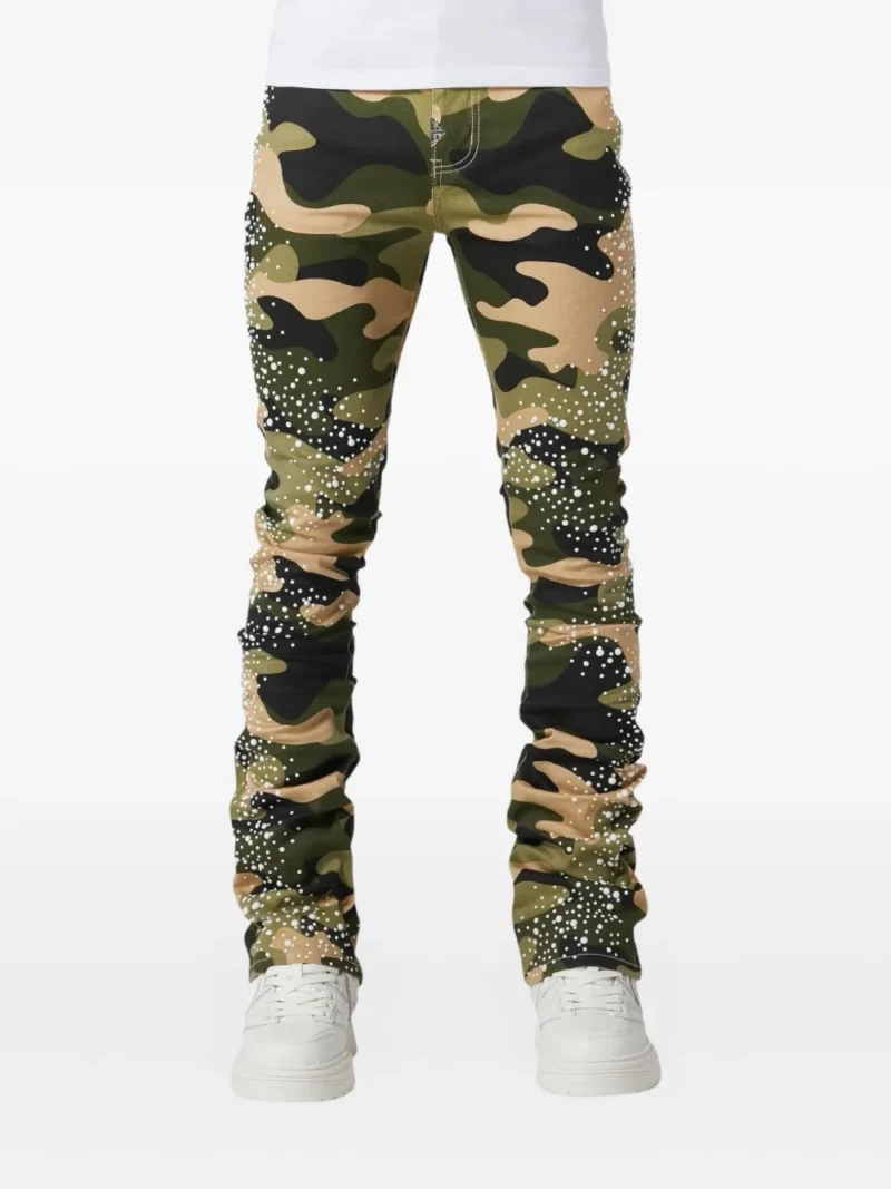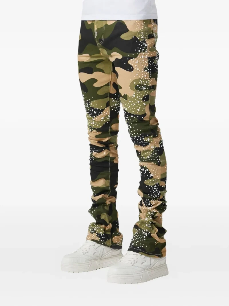 Highlightsgreenthree-dimensional pearl effectfive-pocket styling