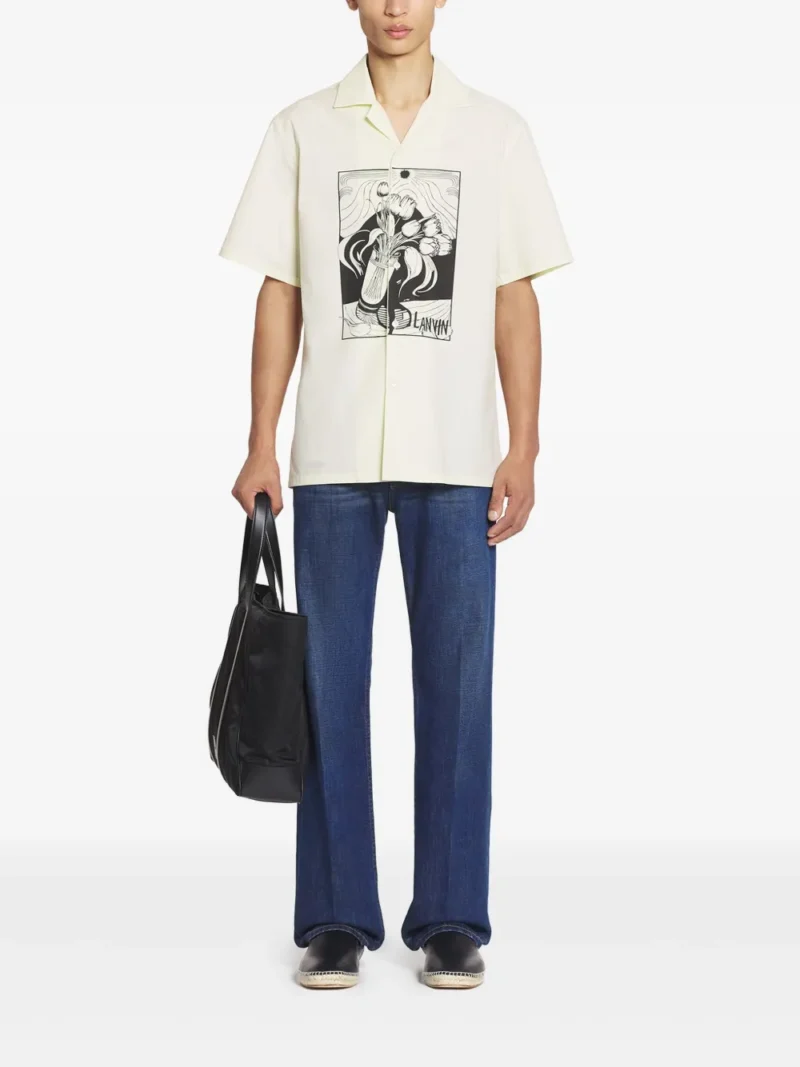Highlightswhitegraphic print to the frontfront button fasteningshort sleeves
