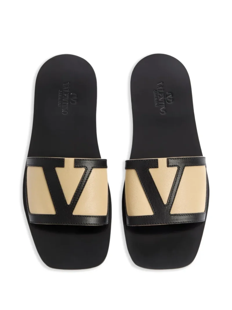 Highlightsblack/light beigegoatskinsmooth grainsuede panellingslip-on styleVLogo Signaturesquare open toebranded footbedflat rubber sole