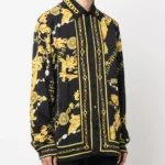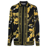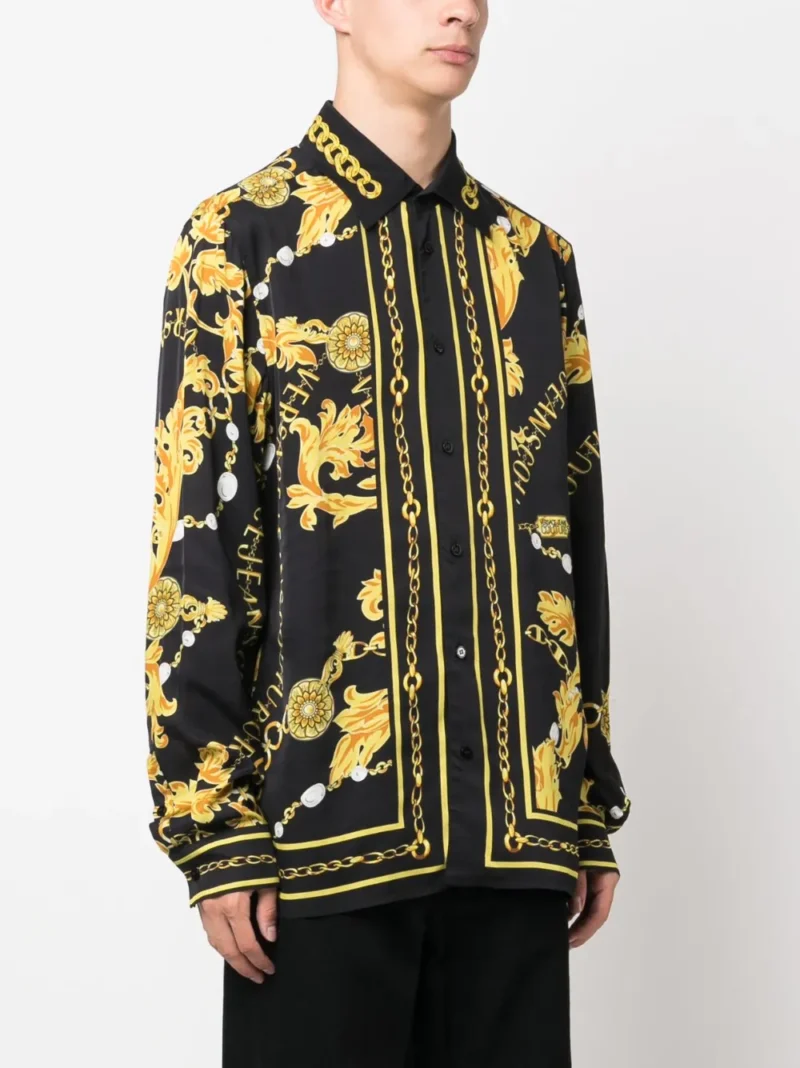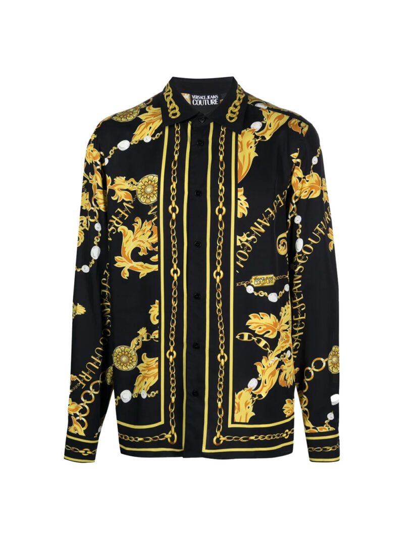 Highlightsblack/yellow goldbaroque-pattern printall-over logo printbuttoned cuffsclassic collarfront button fasteninglong sleevesstraight hem